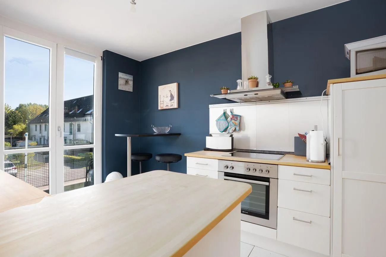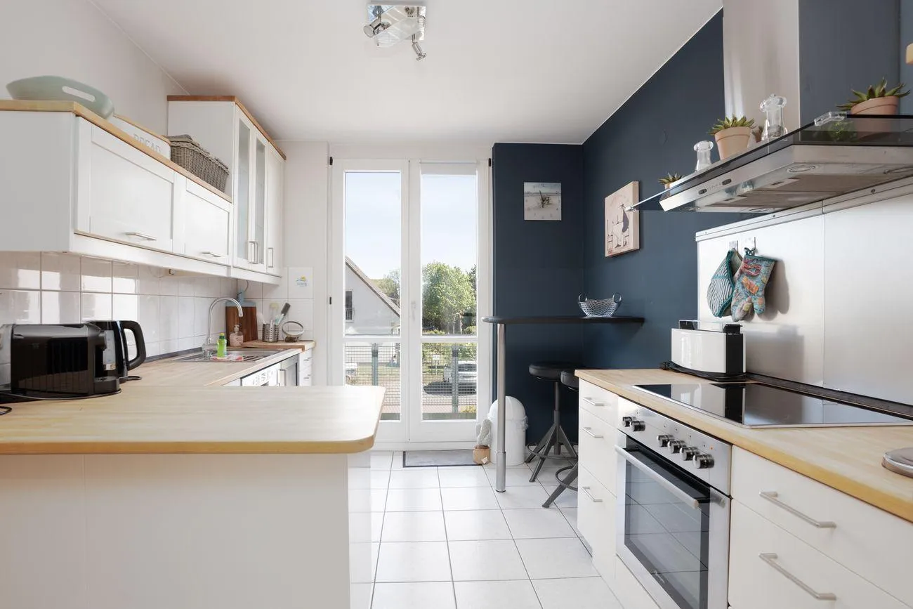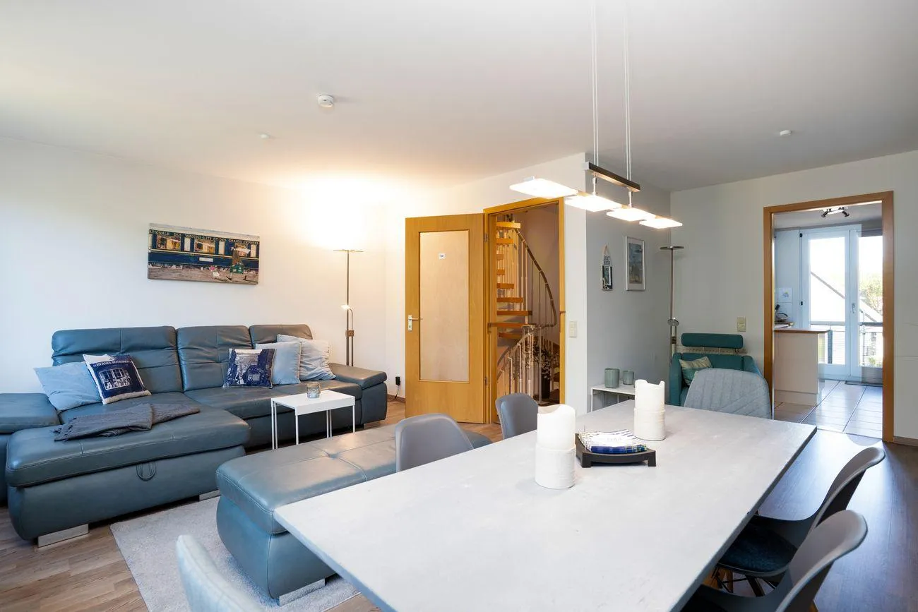 Im 1. Obergeschoss befindet sich der lichtdurchflutete Wohn- und Essbereich mit angrenzender, voll ausgestatteter Küche (inkl. Herd, Backofen, Kühlschrank, Geschirrspüler, Mikrowelle, Kaffeemaschine und Toaster). Ein Gäste-WC, ein gemütlicher Balkon sowie die Terrasse mit dem kleinen Garten bieten ideale Möglichkeiten zum Durchatmen – ob beim Frühstück an der frischen Luft oder einem Glas Wein am Abend.