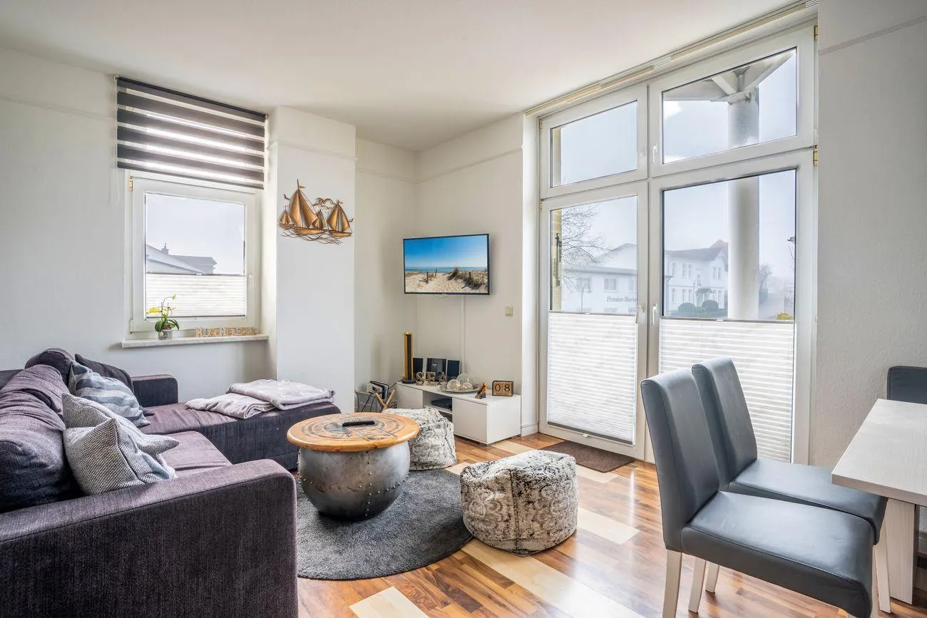 Die Wohnung besteht aus einem Wohnraum, separater Küche, 2 Schlafzimmer und einem möblierten Balkon. Das Apartment ist  ca 68 qm groß und für bis zu 6 Personen geeignet.