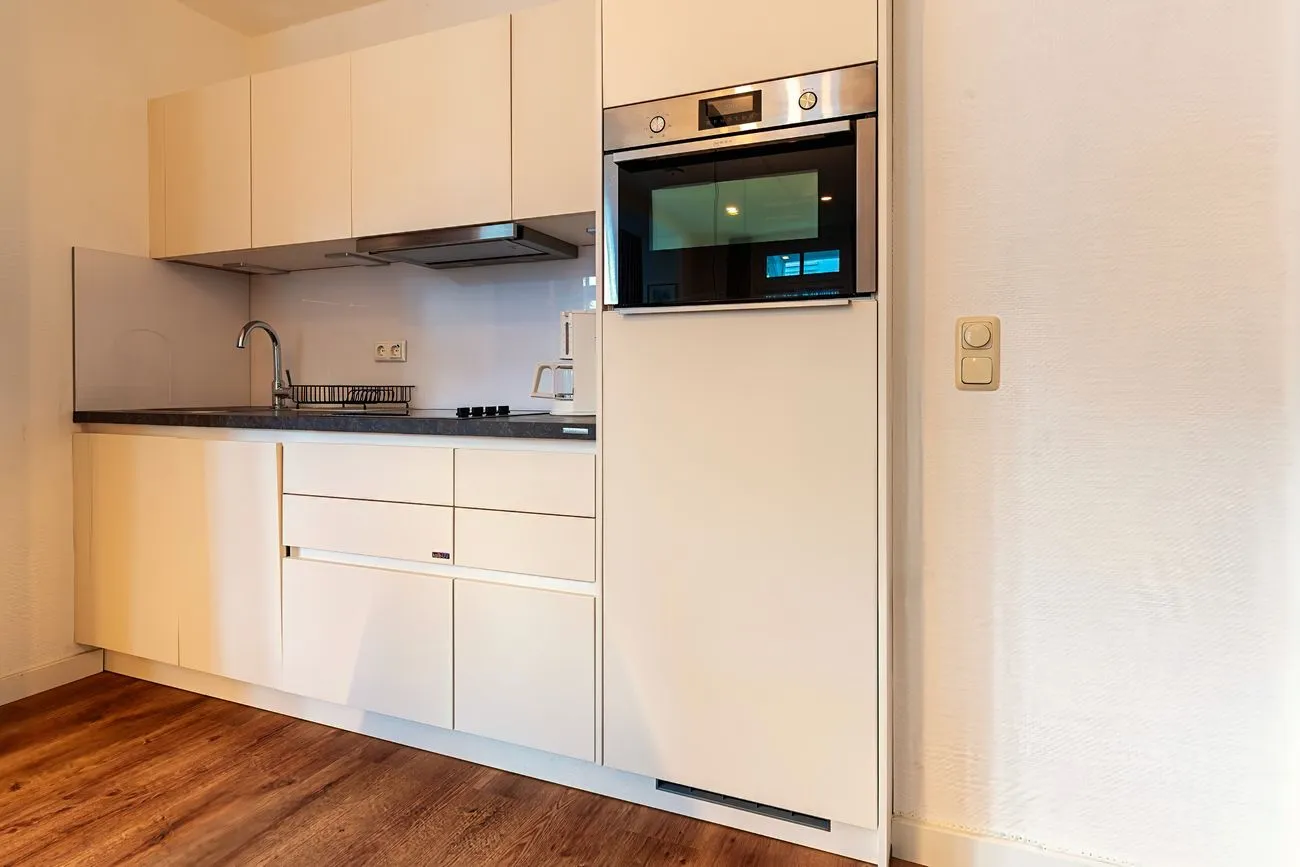 Im Wohn/Essbereich ist eine umfangreich ausgestattete Küchenzeile integriert. Ein Highlight davon ist die Desinfizierungsstation für alltägliche Gebrauchsgegenstände, z.B. Handys, Fernbedienungen, Kinderspielzeug etc.