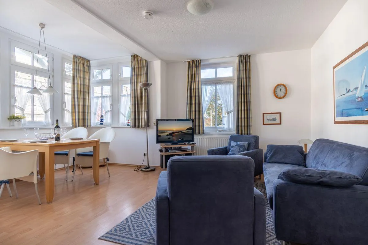 Unser freundliche 3-Zimmer Apartment bietet Platz für 4 Personen. Neben dem Wohnbereich mit integrierter Küche und dem Schlafzimmer mit Doppelbett und TV gibt es ein weiteres Schlafzimmer mit Schlafcouch für 2 Personen.