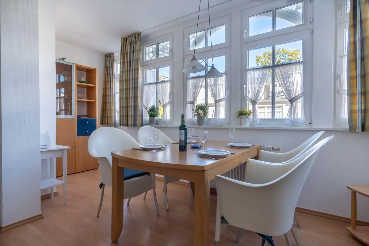 Nur wenige Hundert Meter vom traumhaften, feinsandigen Strand entfernt liegt dieses ruhig gelegene Apartment und befindet sich daher in einer der exklusivsten Gegenden von Binz. Hier können Sie nach Belieben spazieren gehen, sich im Meer abkühlen oder einfach die Seele baumeln lassen.