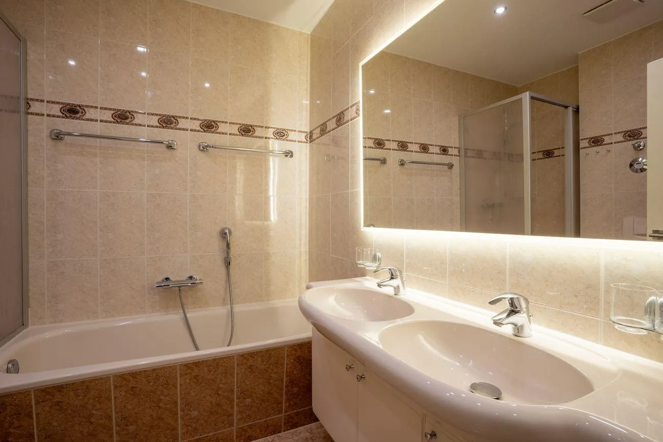 - Badezimmer mit Dusche und Badewanne