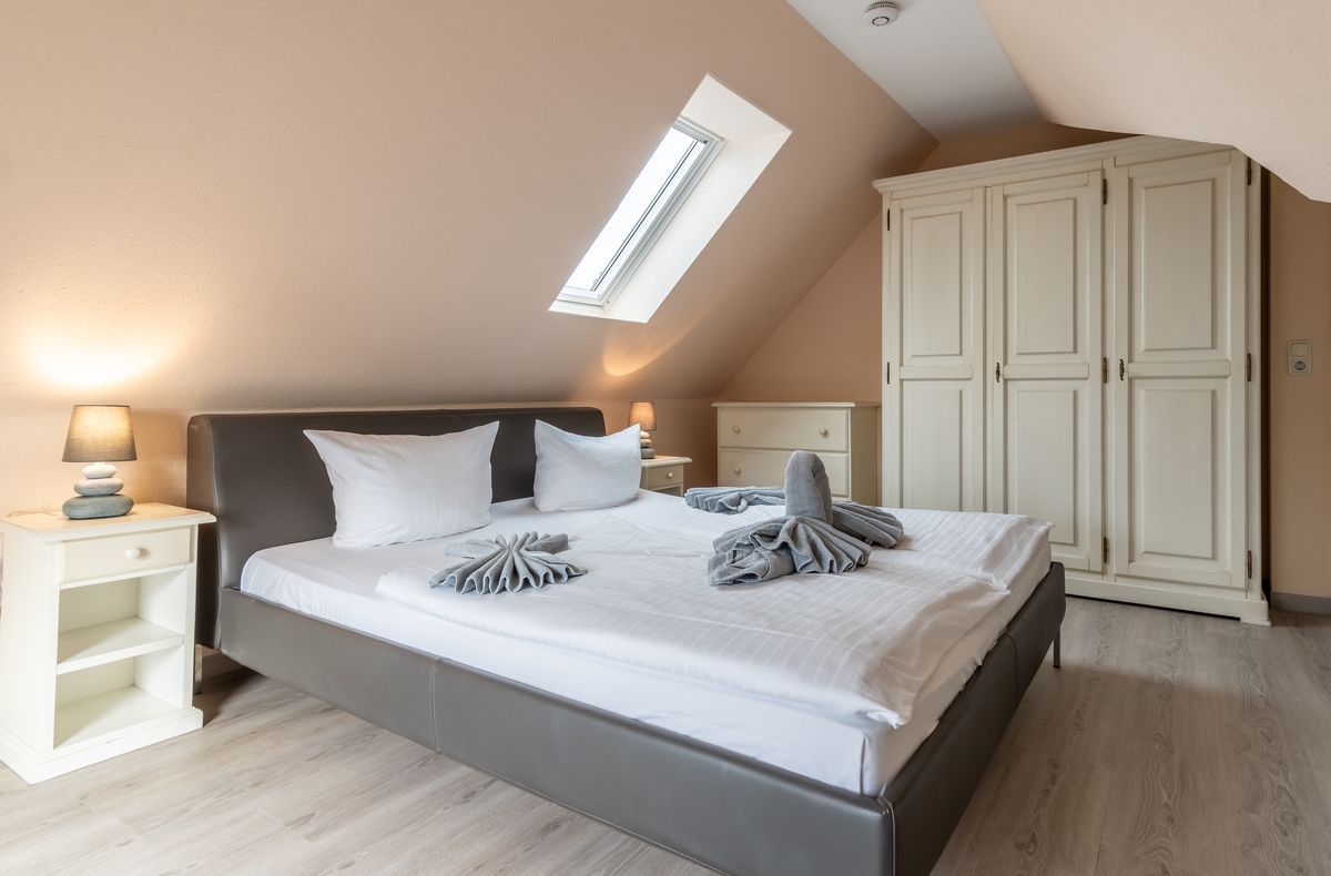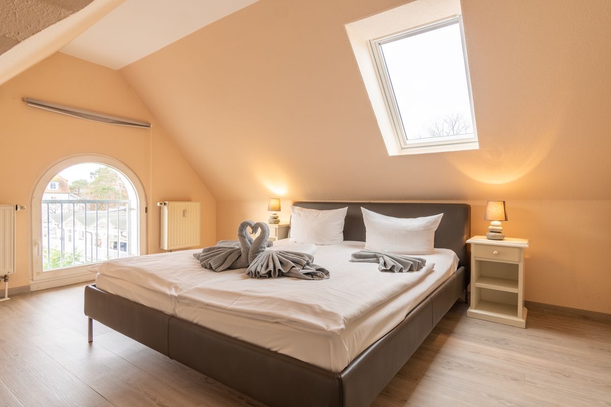 Die Wohnung ist modern eingerichtet und bietet mit rundum durchdachter Ausstattung Platz für bis zu 5 Personen auf ca. 56qm. Sie befindet sich im Dachgeschoß der Villa Strandidyll.