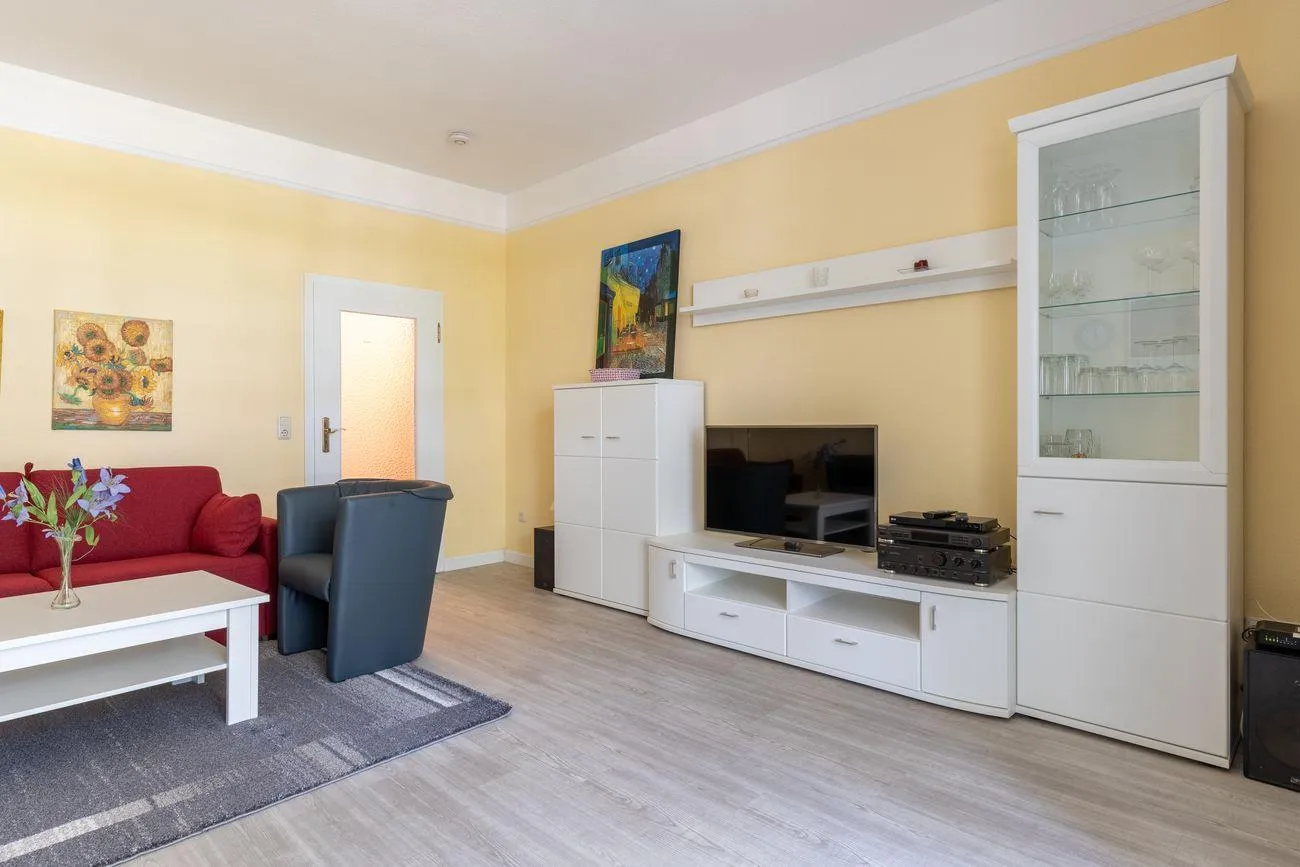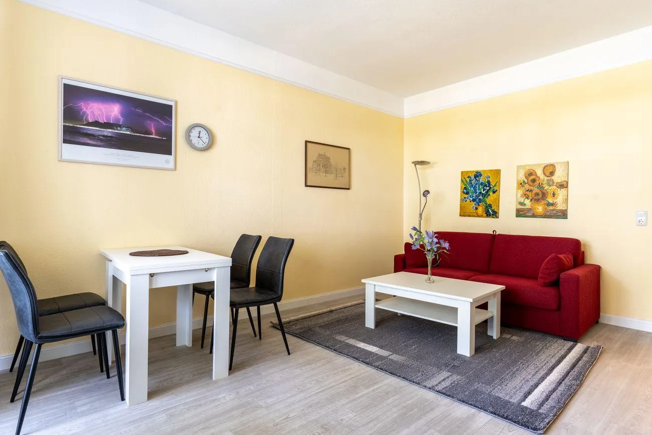 Die liebevoll gestaltete Ferienwohnung überzeugt mit durchdachter Raumaufteilung und hochwertiger Ausstattung. Im hellen Wohn- und Essbereich lädt eine gemütliche Couch zum Verweilen ein, die sich abends schnell in eine bequeme Schlafgelegenheit für zwei Personen verwandeln lässt. Ein Flachbild-TV und eine Stereoanlage bieten Unterhaltung. Vom Wohnzimmer aus gelangen Sie direkt auf den großen Balkon – mit herrlichem Blick auf die Ostsee.